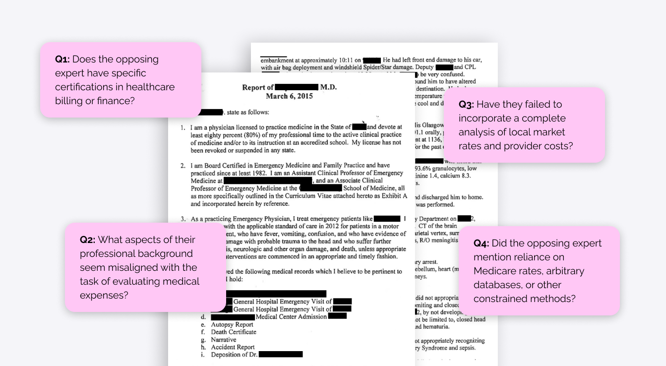 At this stage, the system conducts a comprehensive analysis of key aspects of the expert report to identify areas where the opposing party’s expertise may be insufficient.