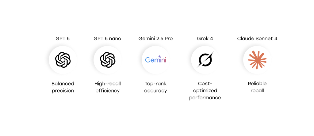 - Claude Sonnet 4 delivers high recall with the highest cost, it should be paired with use cases that justify the expense.