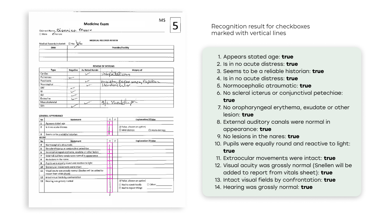 The client needed to automate the processing of paper patient questionnaires that are filled out manually before a doctor’s appointment, as well as forms completed by doctors during consultations. These questionnaires contain information about symptoms and the patient’s condition and are used by doctors for initial diagnosis, treatment decisions, and tracking patient progress over time.